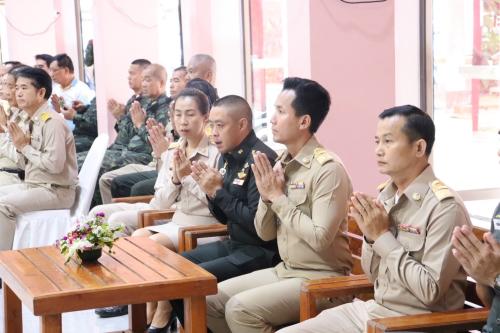 ?พิธีทางศาสนา เจริญพระพุทธมนต์ และถวายสังฆทานแด่พระสงฆ์จำนวน 9 รูป เพื่ออุทิศส่วนกุศลให้แก่กำนัน ผู้ใหญ่บ้านผู้ล่วงลับ